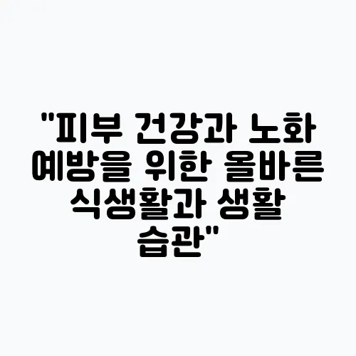 피부 건강과 노화 예방은 현대인에게 매우 중요한 주제입니다. 올바른 식생활과 생활 습관은 피부를 아름답고 탄력 있게 유지하는 데 큰 역할을 합니다. 노화 과정을 지연시키고 활기찬 삶을 누리기 위해서는 건강한 생활 방식을 채택하는 것이 필수적입니다. 오늘은 피부 건강을 위한 실질적인 방법과 더불어 노화 예방을 위해 반드시 지켜야 할 다양한 습관에 대해 알아보겠습니다.